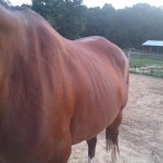 Since June, I’ve noticed little things about Isis that didn’t seem right: she was dragging the tips of her back hooves, she was reluctant to trot or move out, and her regular spirited playfulness was gone except for rare occasions. It’s easy to right off these symptoms to other items. Maybe it was too hot out and she wasn’t having a good day. Maybe the rain rot on her legs made her stiff or lame.